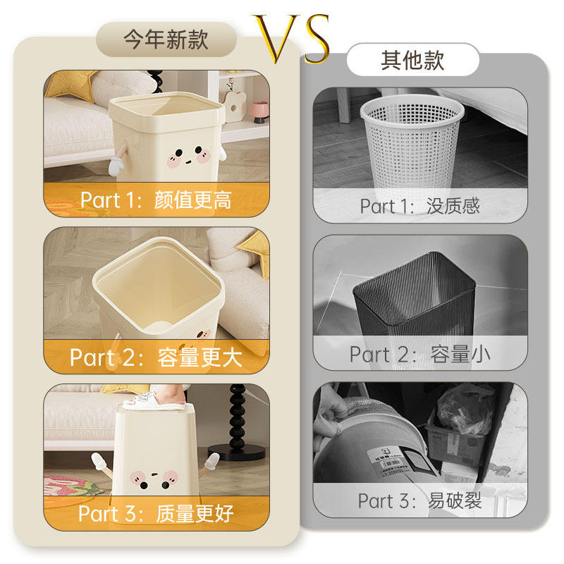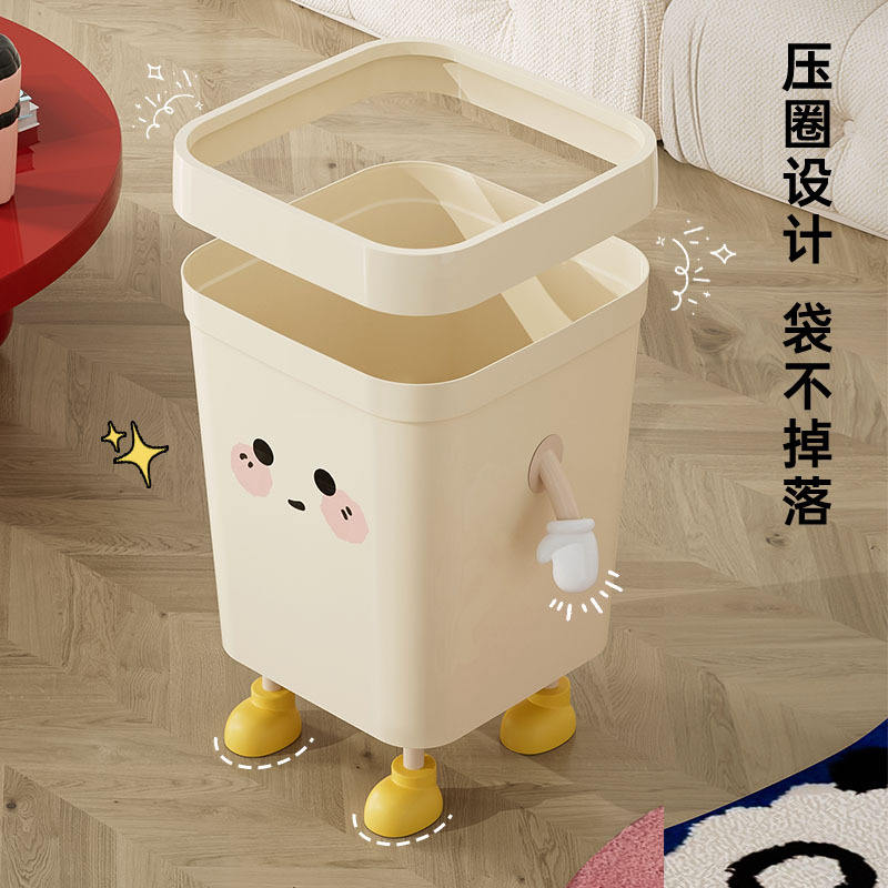 Rectangular Trash Can With Pressure Ring Large Size For Bathroom Kitchen Living Room Indoor Use