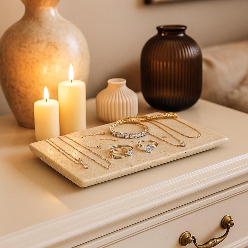 Rectangular Travertine Stone Jewelry Display Tray Elegant Vanity Organizer for Modern Home Decor and Stylish Countertop Storage
