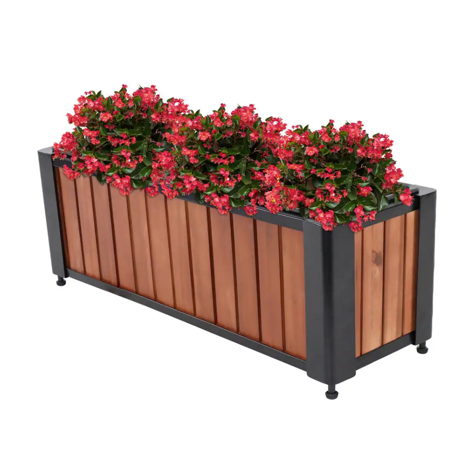 Rectangular Wood Planter Box with Powder-Coated Steel Frame