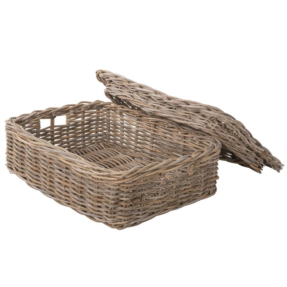Name:Rectangular handmade rattan box Size: 8" H x 23" W x 17.5" D