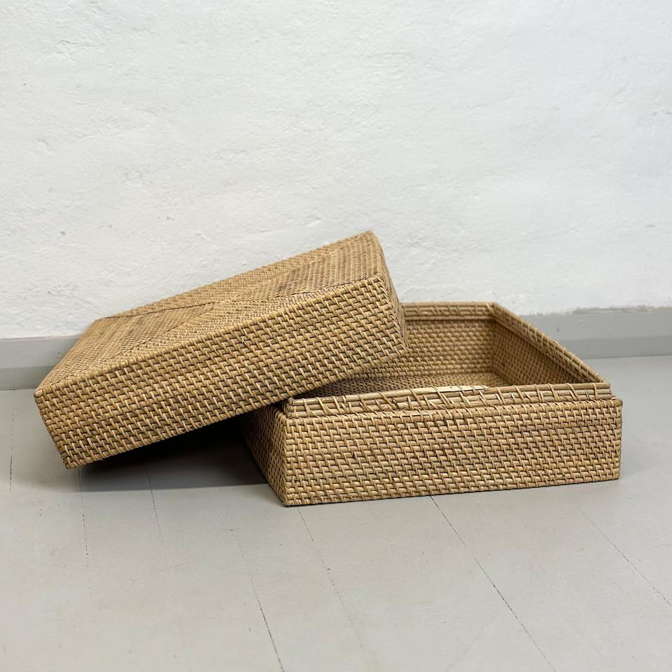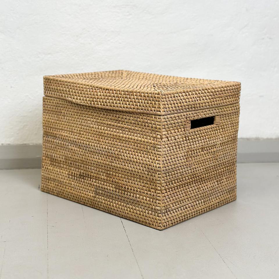 Rectangular Lidded Basket Natural Rattan Boxes Eco Friendly Storage Box for Toy lego Game Kids Room Decor