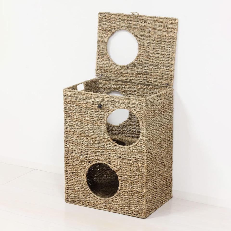 Rectangular pet homes handcrafted sea grass straw home high quality seagrass condo house for pets
