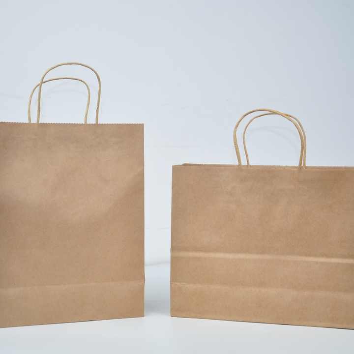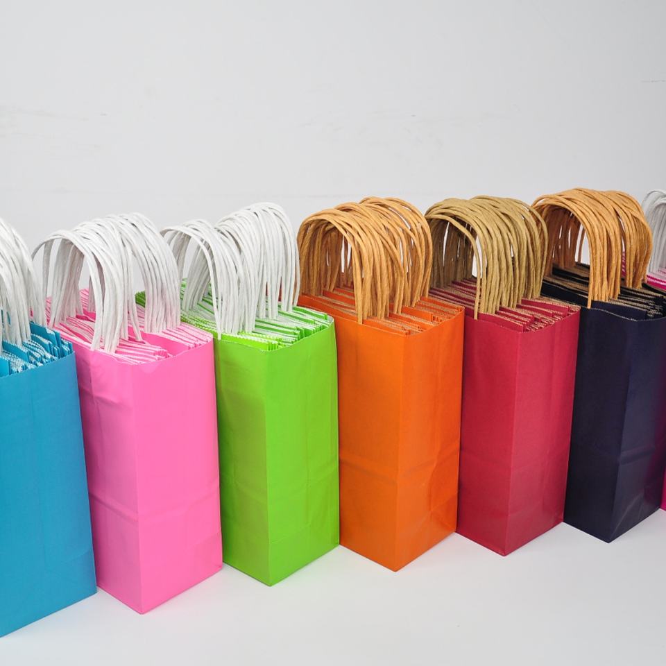 Recyclable Custom Brown and White Eco Kraft Handle Paper Bags in Stock Ready to Ship Paper Bags With Your Logo Printed