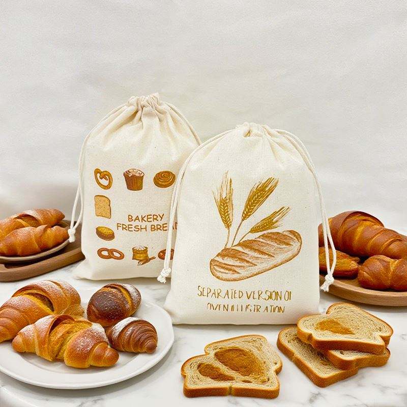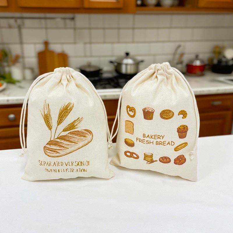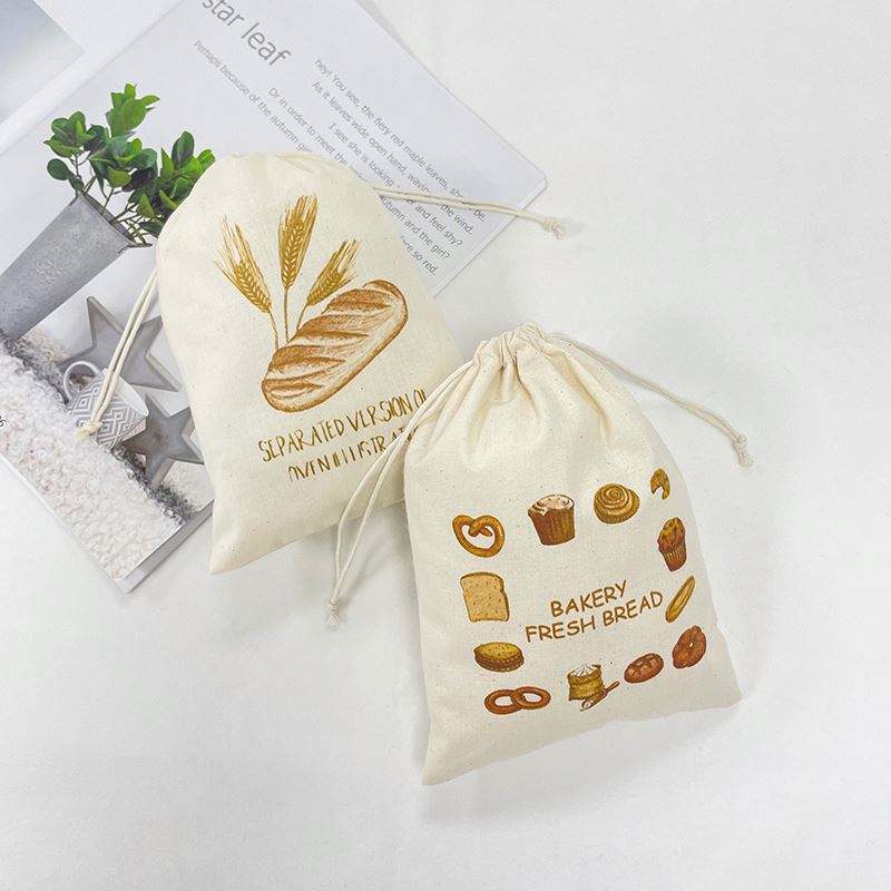 Recyclable Drawstring Cotton Bag Manufacturers Bread Drawstring Storage Pouch for Food Packaging Bread