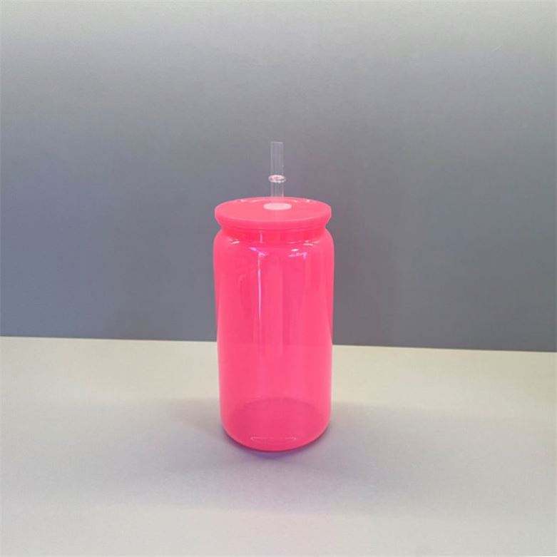 Recyclable Matt Candy Colored Macaron Blank Plastic 16Oz Soda Beer Can Tumbler Cups With Lids and Straws