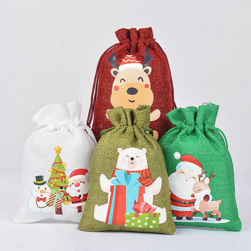 Recyclable Natural Jute Drawstring Pouches 10*14cm Jewelry Packaging and Christmas Candy Gift Bags