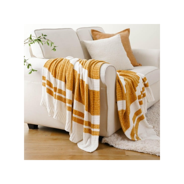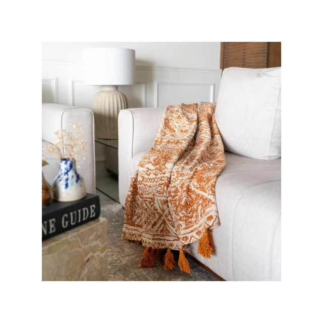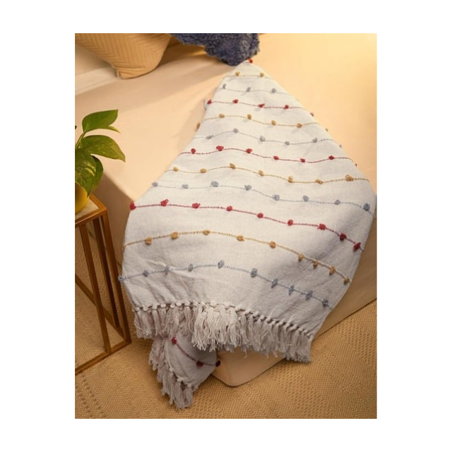 Recycled Acrylic Blend Tasselled 70x90in Slub Knit Couch Throw With Tassel Corners GRS Certified Pick For Eco Premium Furnishing