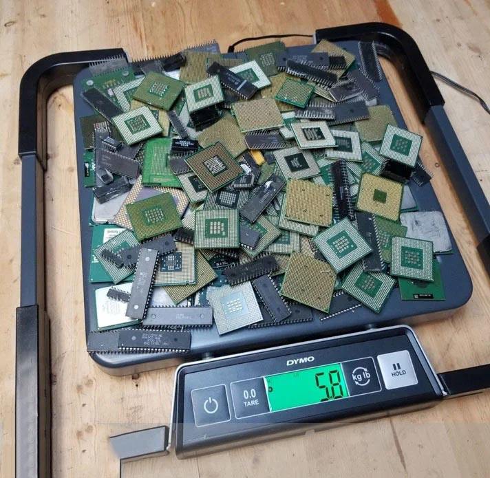 Recycled CPU Processor Scraps with Valuable Metals for Efficient Electronic Scrap Processing