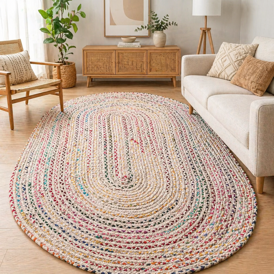 Recycled Cotton Chindi Rug Handmade Eco Friendly Area Rug Boho Oval Carpet Anti Slip Floor Mat Custom Size OEM