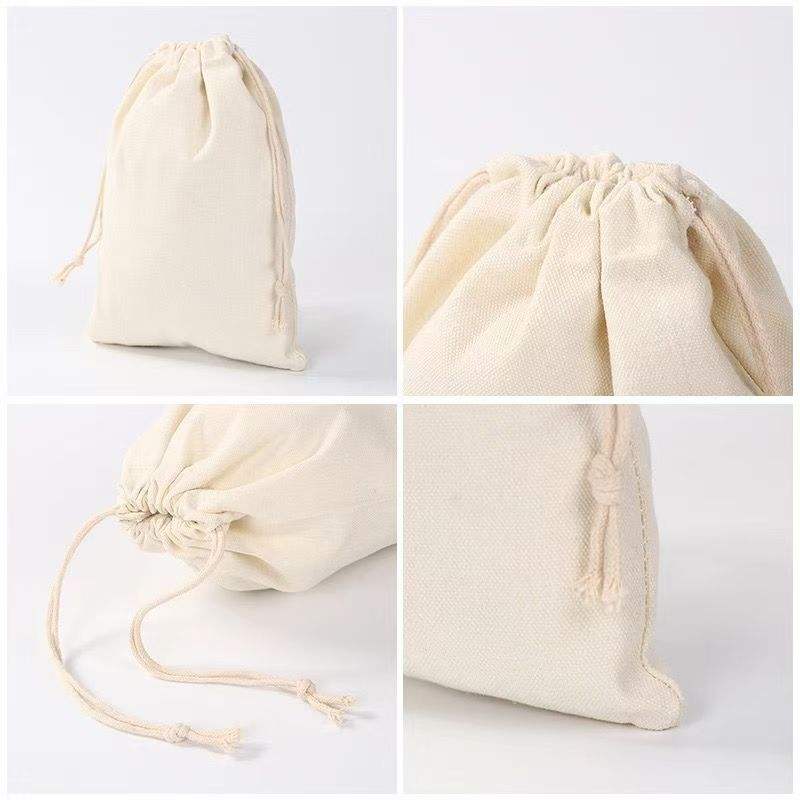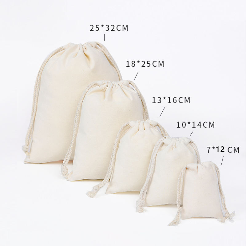Recycled Cotton Fabric Drawstring Gift String Bag With Custom Logo Canvas Jewelry Bag