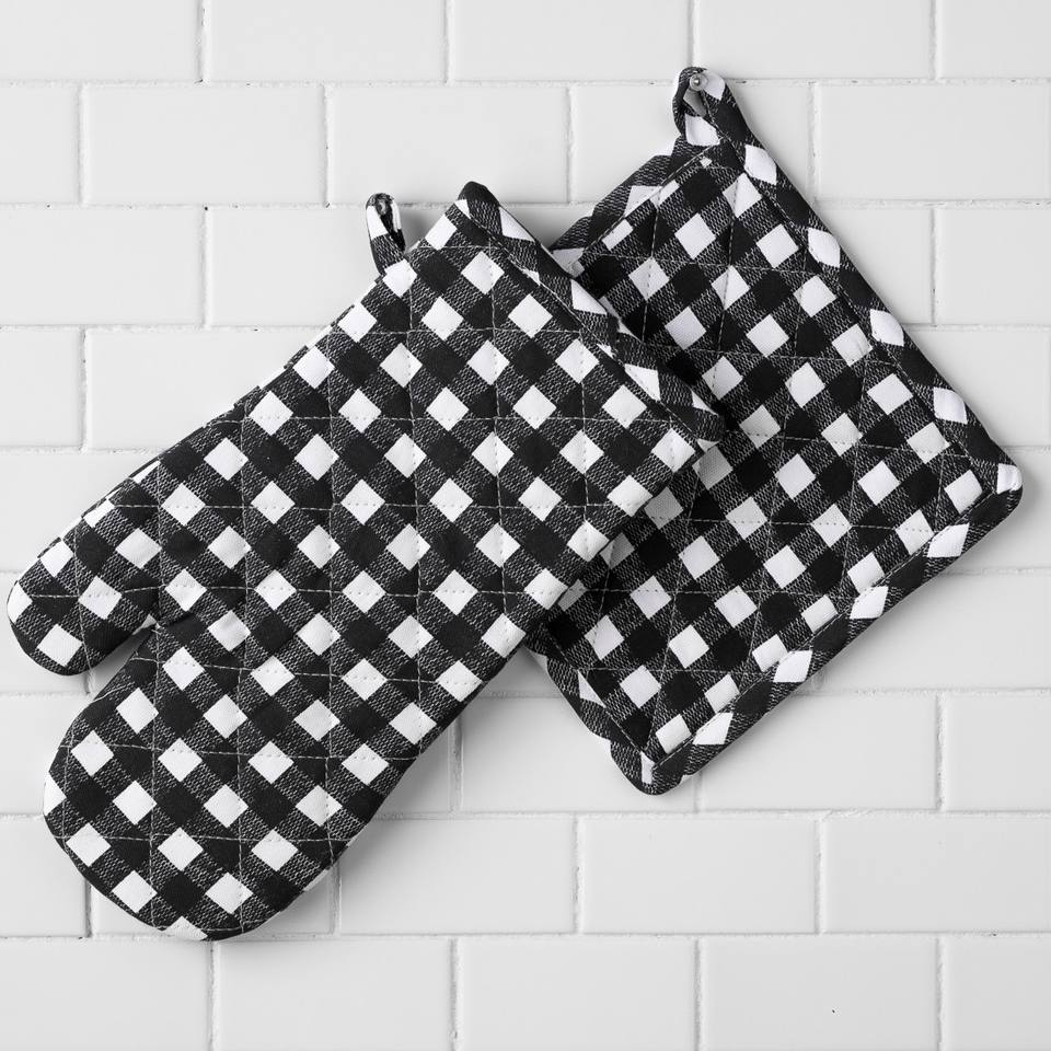 Recycled Cotton Oven Mitts with Silicone Printed Pot Holders for Home Cooking Microwave Baking and Restaurant Use