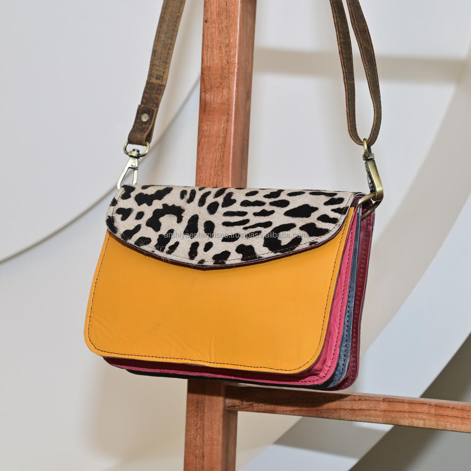 Recycled Fur Leather Sling Bag Colorful Leopard Fur Western Pattern New Design Bag Multi Color Bag for Women's Multi Use