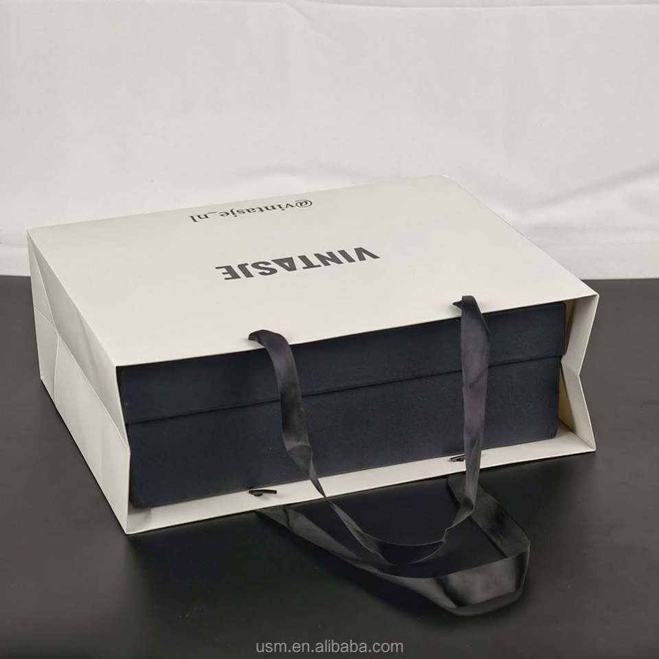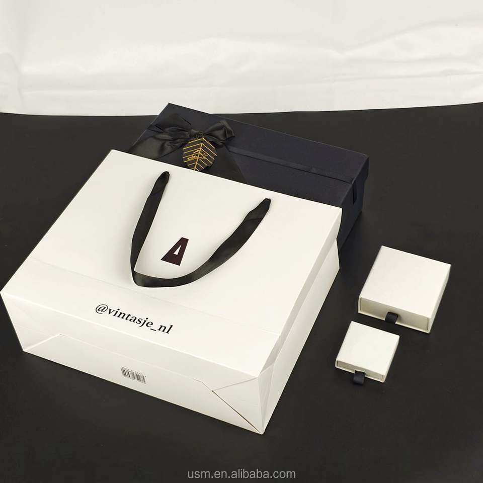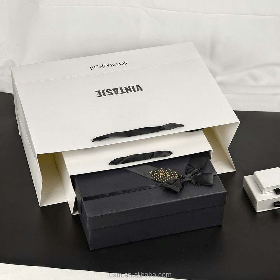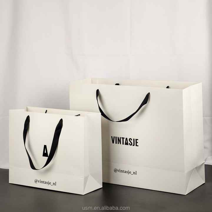Recycled Luxury Cream Beige Kraft Paper Shopping Bag With Your Own Logo Ribbon Handle Bow for Gift Packaging Custom Printing
