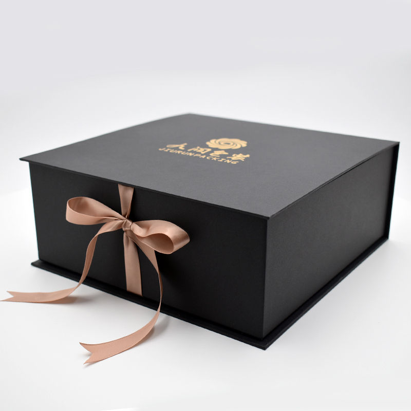 Recycled Luxury Magnetic Gift Box Black Fold Rigid Cardboard Paper Box with Ribbon Closure Custom Logo Packaging