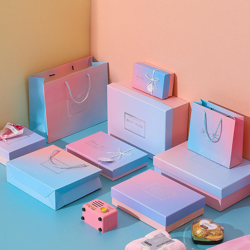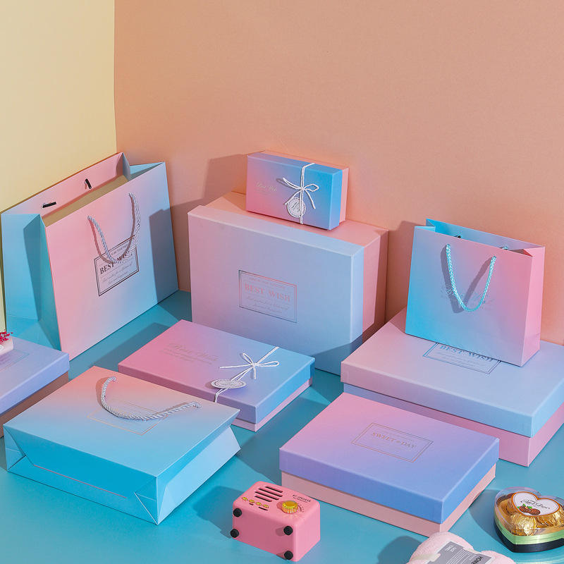 Recycled Materials Square Gradient Color Gift Box Heaven and Earth Cover Creative Gift Packaging Box for Valentine's Day
