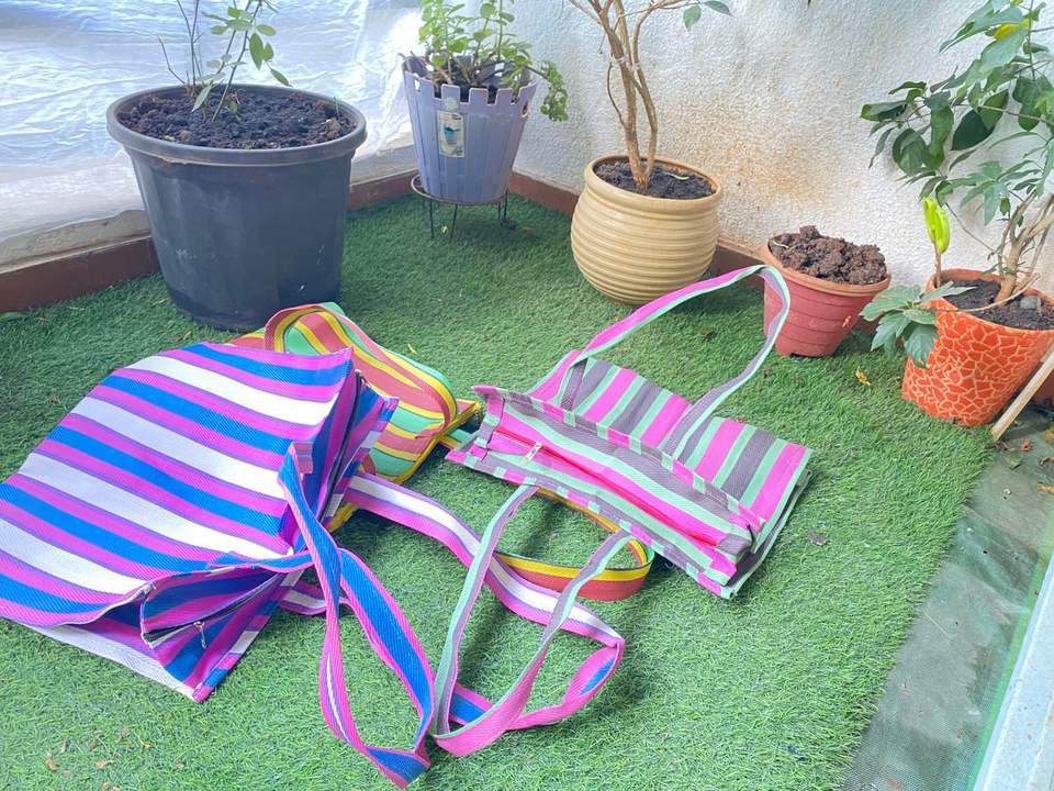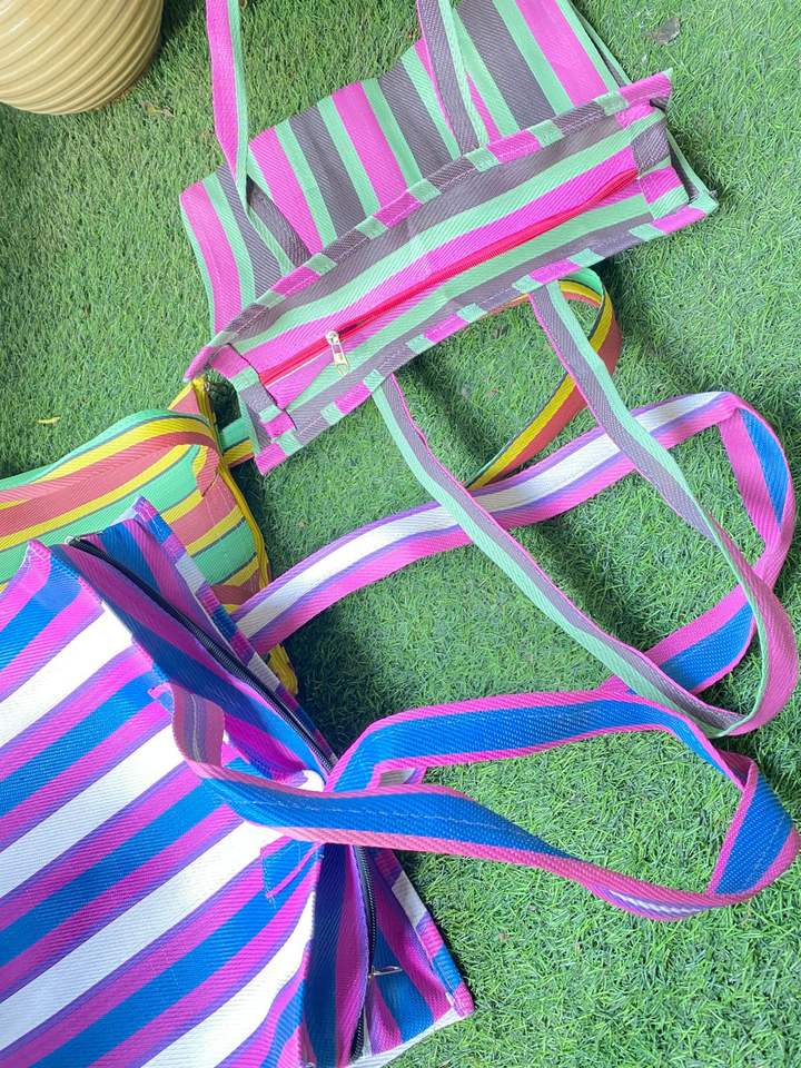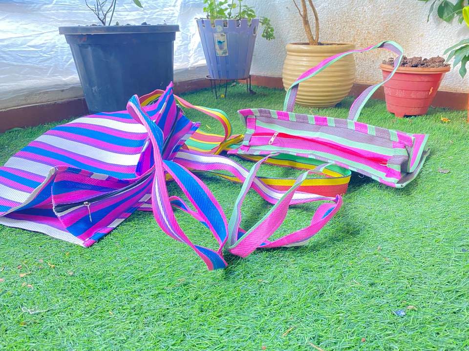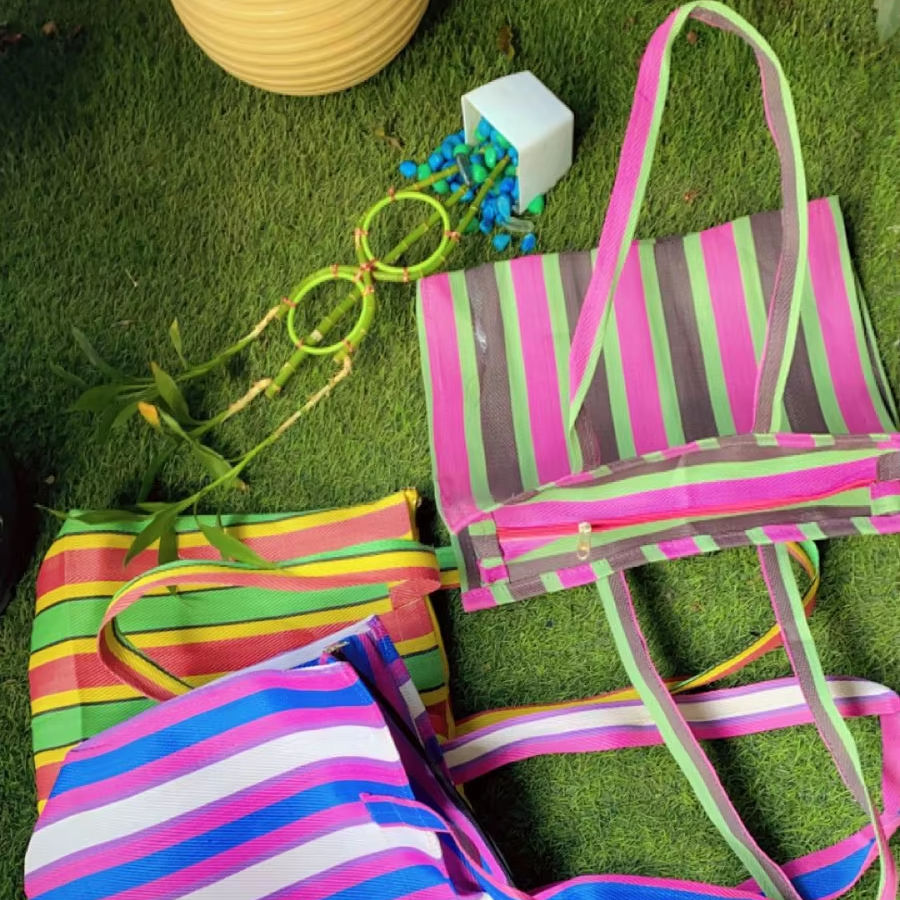 Recycled Nylon PP Woven Striped Plastic Handloom Shopping Bags Reusable Eco-Friendly Market Bags from India-Wholesale