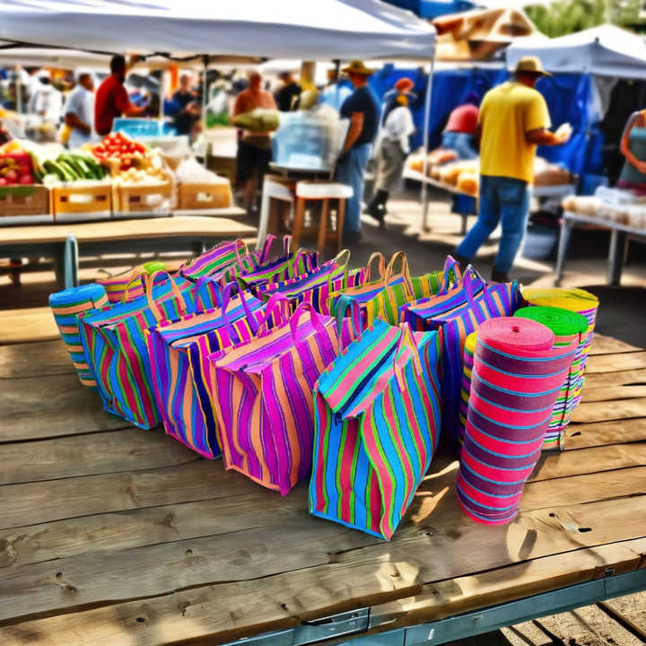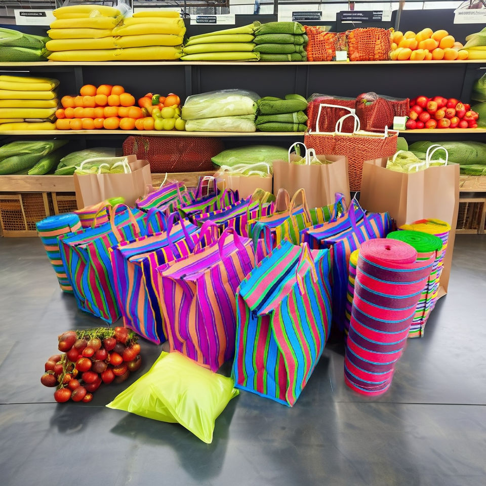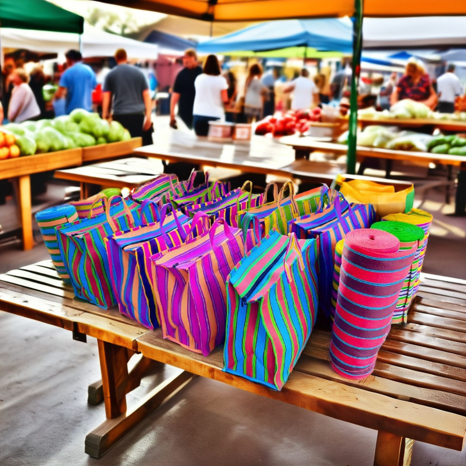 Recycled Nylon PP Woven Striped Shopping Bags Eco-Friendly Reusable Plastic Market Bags Manufactured in India Wholesale