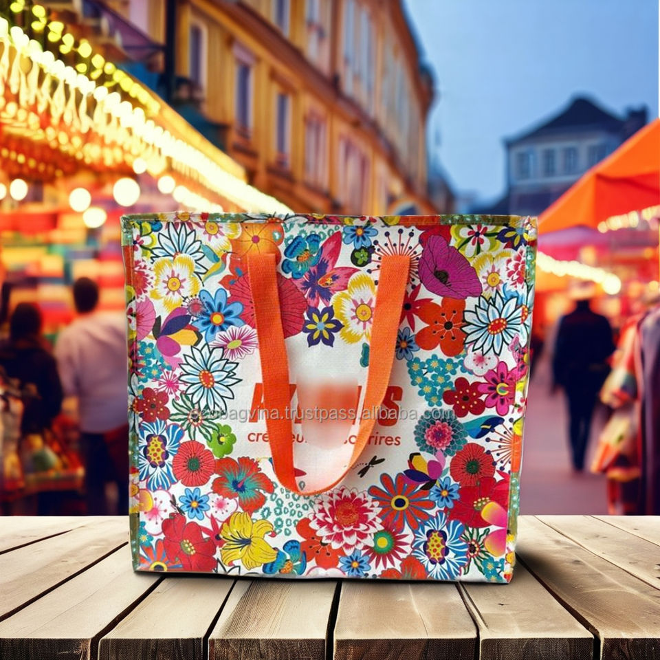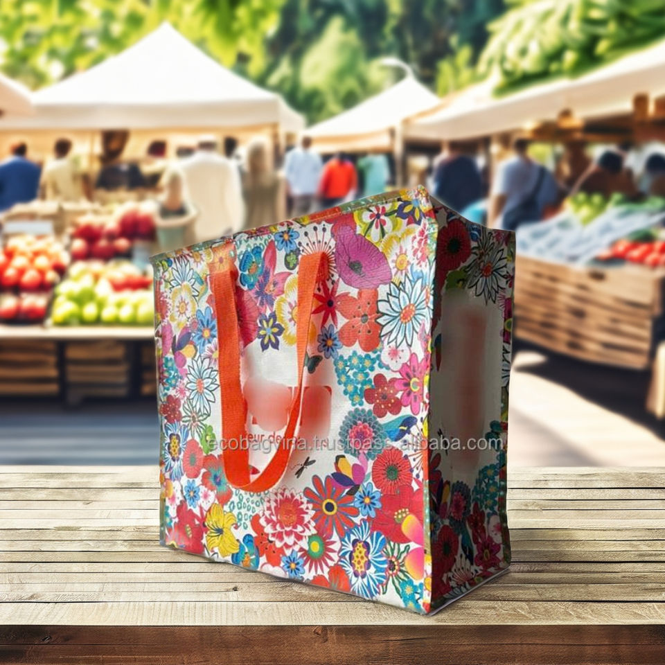 Recycled PP Woven Grocery Bag Glossy BOPP Laminated Full Lamination on Both Sides Zipper Shopping Bag