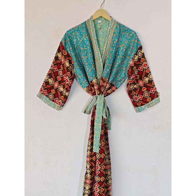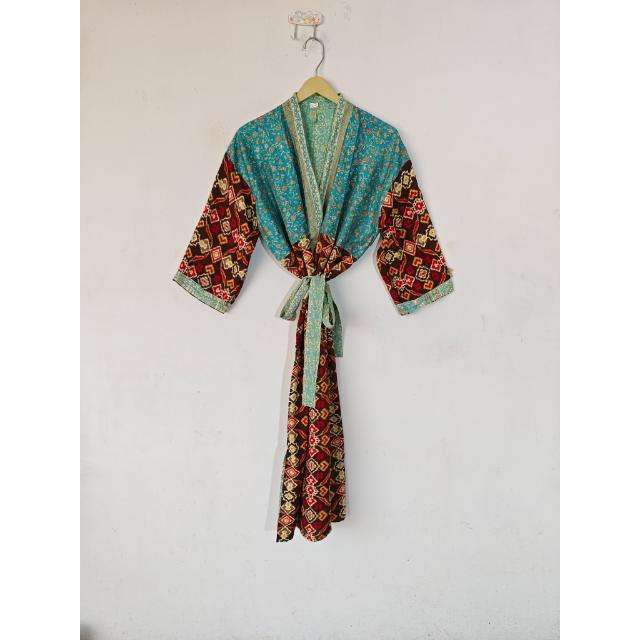 Recycled Silk Maternity Gown Sleepwear Indian Summer Beach Wear Sari Kimono Bikini Cover Dressing Gown