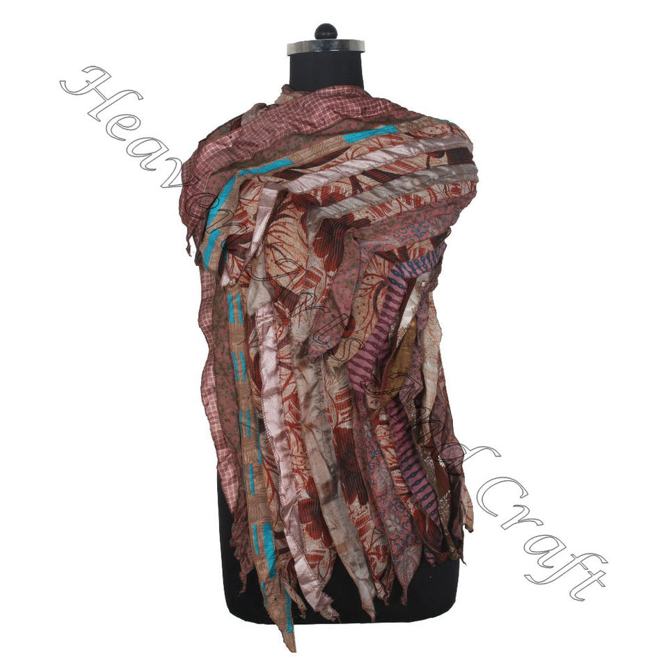 Recycled Silk Sari 15 Strips Designer Handmade Scarves Stole Shawls SC654 Fine Silk Wholesale Recycled Vintage Sari Female Scarf