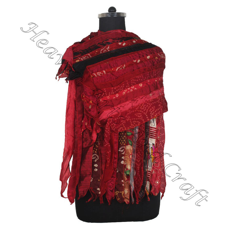 Recycled Silk Sari 15 Strips Indian Vintage Silk Sari Reversible Indian Scarves Recycle Silk Stoles Wrap Sari Patchwork Scarves