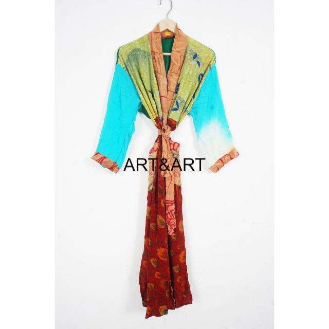 Recycled Silk Sari Kimono Vintage Indian Maternity Gown Swim Beachwear Robe for Summer Spring Elegant Vintage Indian Kimono