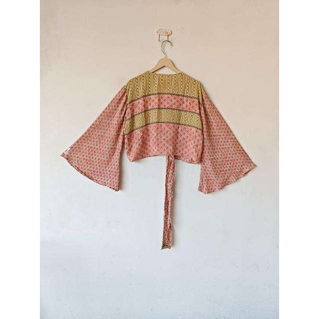 Recycled Style Tie Top Most Trending Women's Crop Top with Bell Sleeve Free Size Floral Print Casual Silk Wrap Summer Party Wear