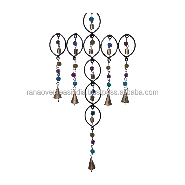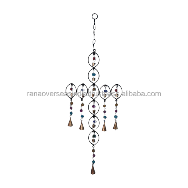Recycled Wall Mounted Iron Bells and Glass Beads Wind Chime High Quality Decorative Metal Wind Chime at Wholesale Price