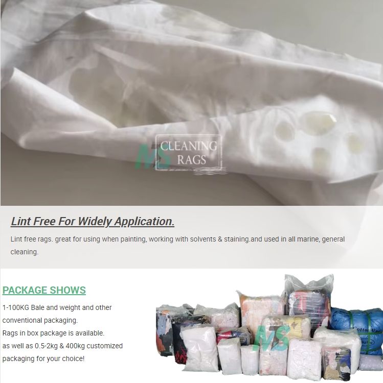 Recycled White Cotton Cleaning Rags LINT FREE Textile Waste Cutting Pieces and Sheetig From Natural Fiber