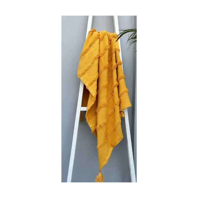 Recycled Yellow Tufted Weave 55x75in Soft Durable GOTS India Certified For Buyers Wanting Eco Focused Cozy Interior Couch Throw