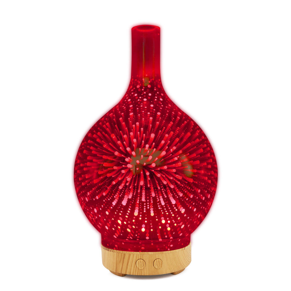 Red 3D Glass Essential Oil Diffuser With Led Light Mini Ultrasonic Humidifier For Home And Commercial Use
