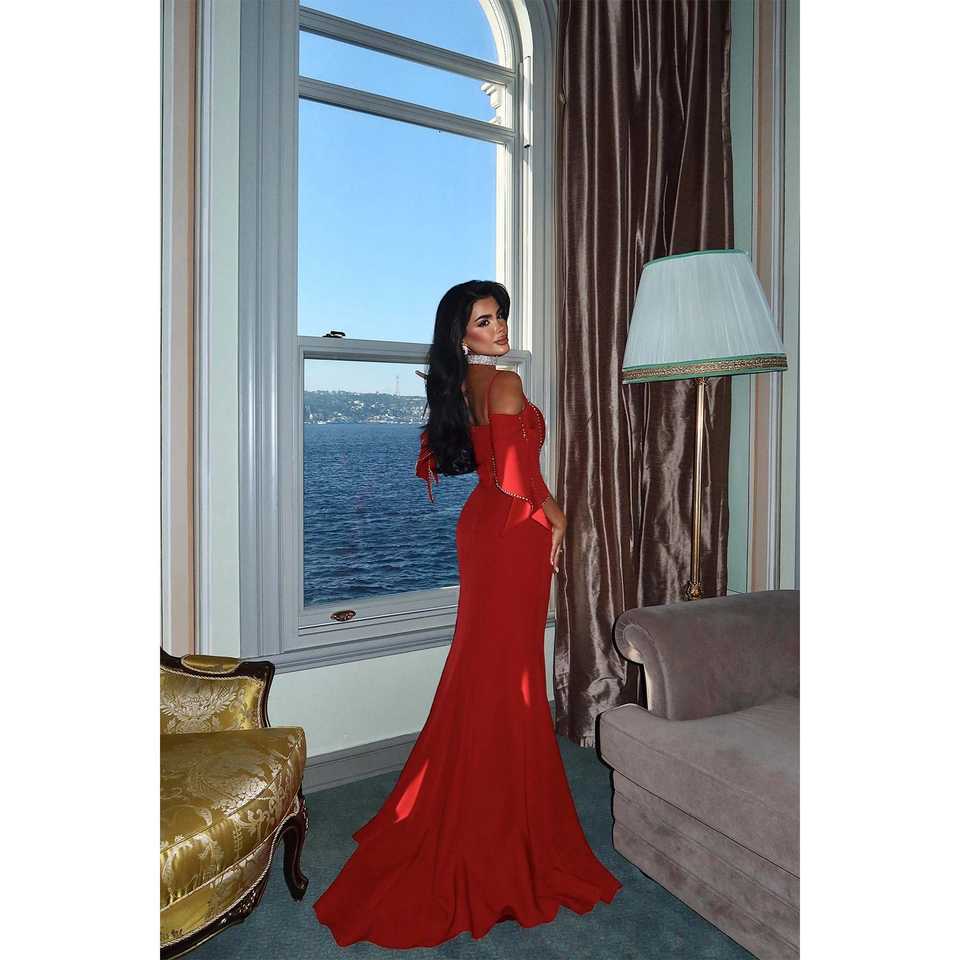 Red Aella Formal Party Gown Long Evening Dress Scoop Neck Empire Tiered Sequined Slit Floor-Length Ball Gown for Homecoming XS