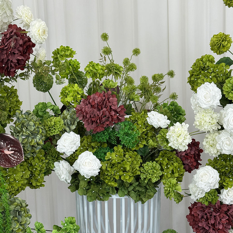 Red And White Flowers Green Plants Artificial Flower Arch For Marriage Birthday Party Backdrop Wall