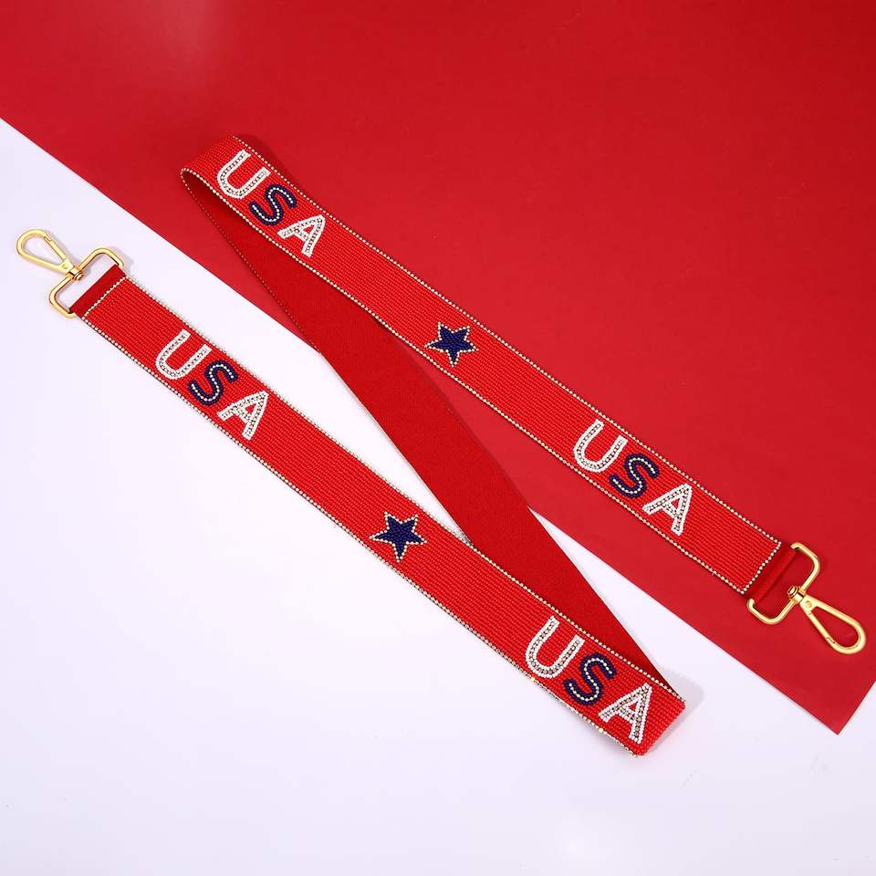 Red Beaded Bag Straps USA Letter Shoulder Belts Crossbody Replacement Handle Canvas Zinc Hardware Adjustable Detachable Handbags