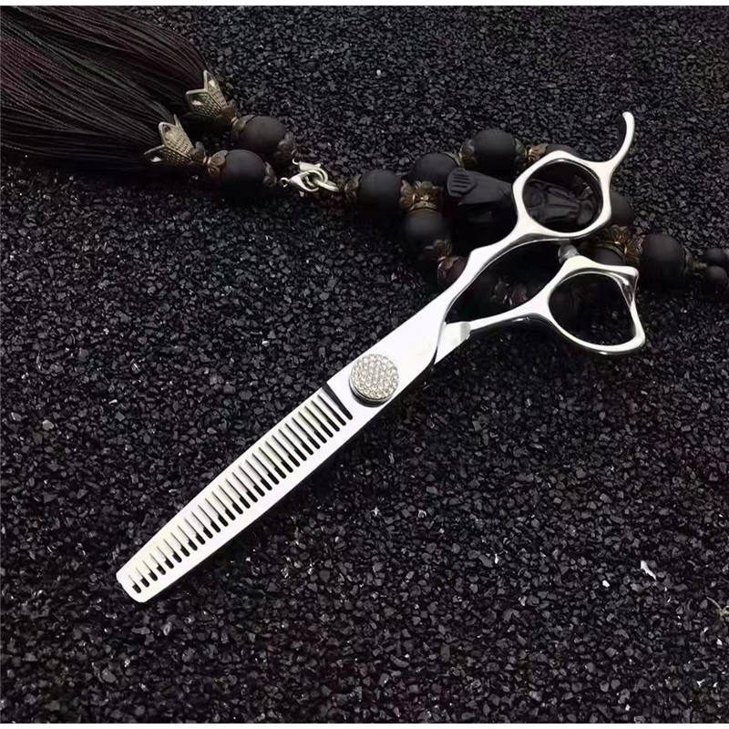 6-inch flat shears and 6-inch thinning shears; custom sizes available.
