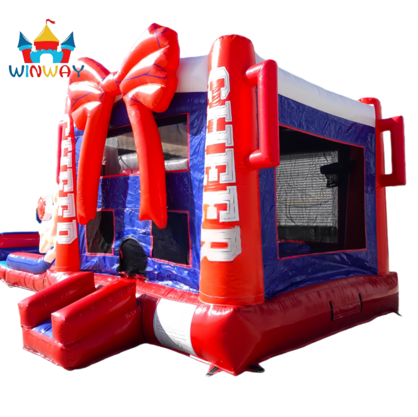 Red Blue Cheerleading Inflatable Bounce House with Slide, Commercial Kids Jumping Castle for Party Rental & Outdoor Play