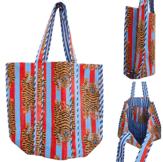 Red & Blue Stripe Tiger Quilted Tote Bag - Stylish Eco-Chic Everyday Handbag