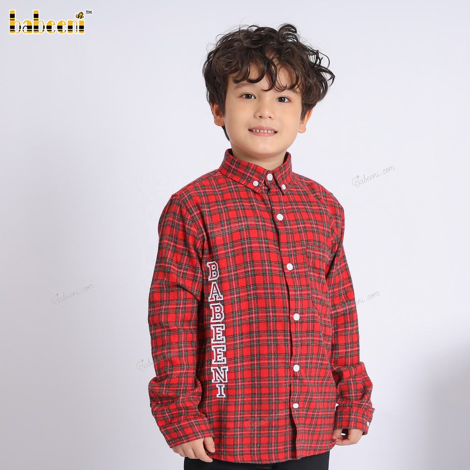 Babeeni Red Boys Casual Shirt with V-neck Long Sleeve Logo Embroidery 100% Organic Cotton-BC1241