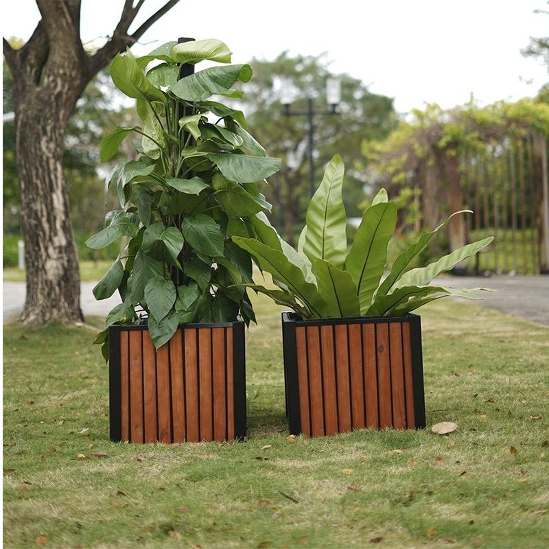 Red Brown Square Wooden Planter Pots with Durable Powder Coated Steel Legs Plastic Liner for Modern Home Garden 19.3x19.3x18.5in