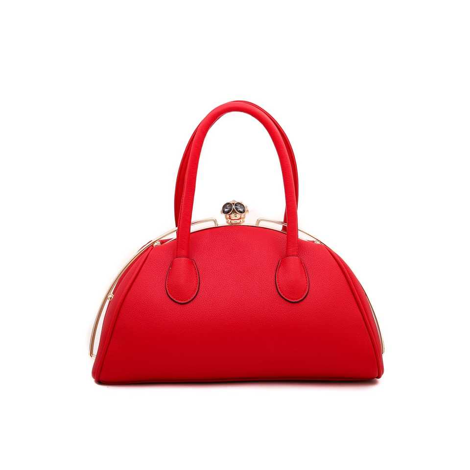 Red Casual Tote Handbag P35825 Big Size Two Straps Feathers Chains Print Embroidery Letter Rivet Made Metallic PU Leather