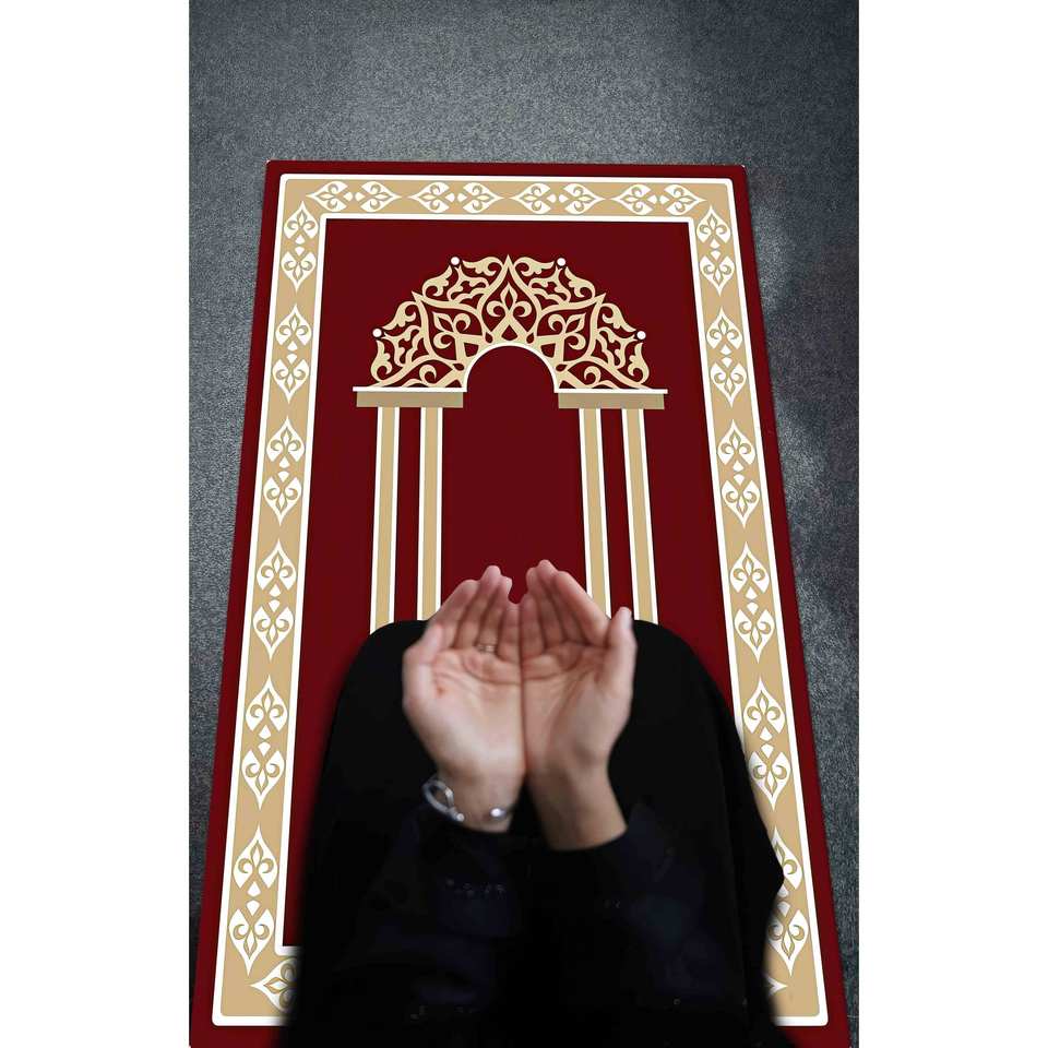 Red Chenille Prayer Rug: 3D Printed Muslim Worship Rug,With Pile Soft Rug