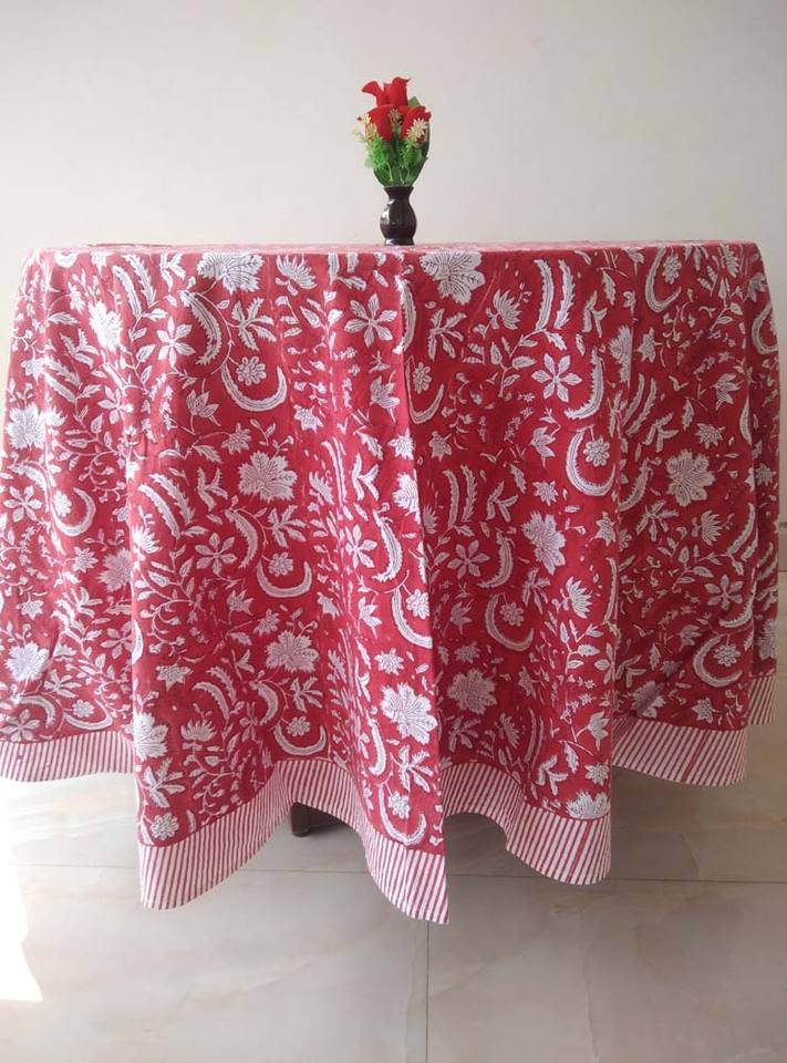 Handmade Red Christmas round Tablecloth Pure Cotton Block Printed for Indian Farmhouse Wedding & Home Use