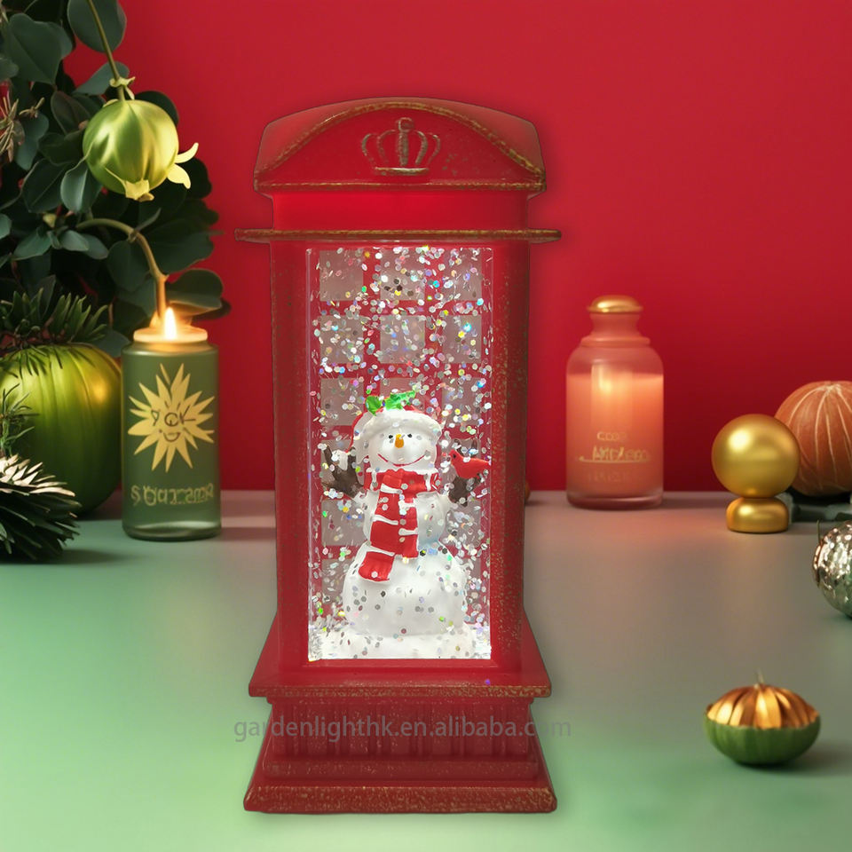 Red Christmas Tabletop Decoration Snowman LED Water Glitter Lantern