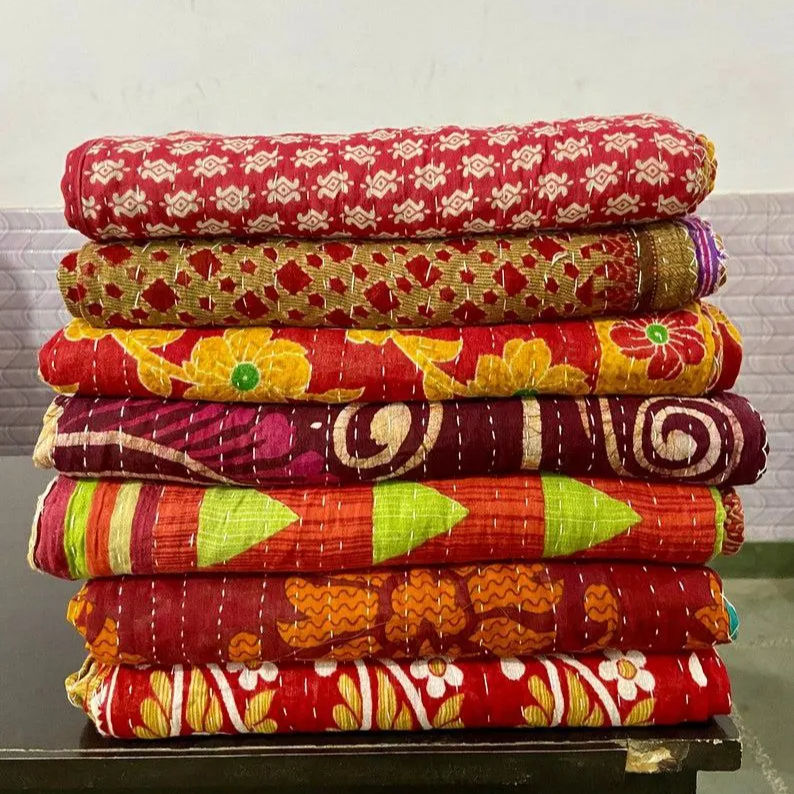 Red Color Indian Tribal Kantha Quilts, Vintage Cotton Bed Cover Throw Old Sari Made Assorted Patches Made Whole Sale Blanket