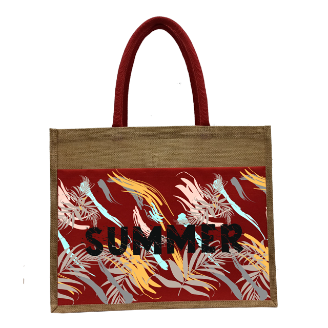 Red Color Jute Canvas Handbags Novation Bag Manufacturer of India with Nice Printing Affordable Price Bags