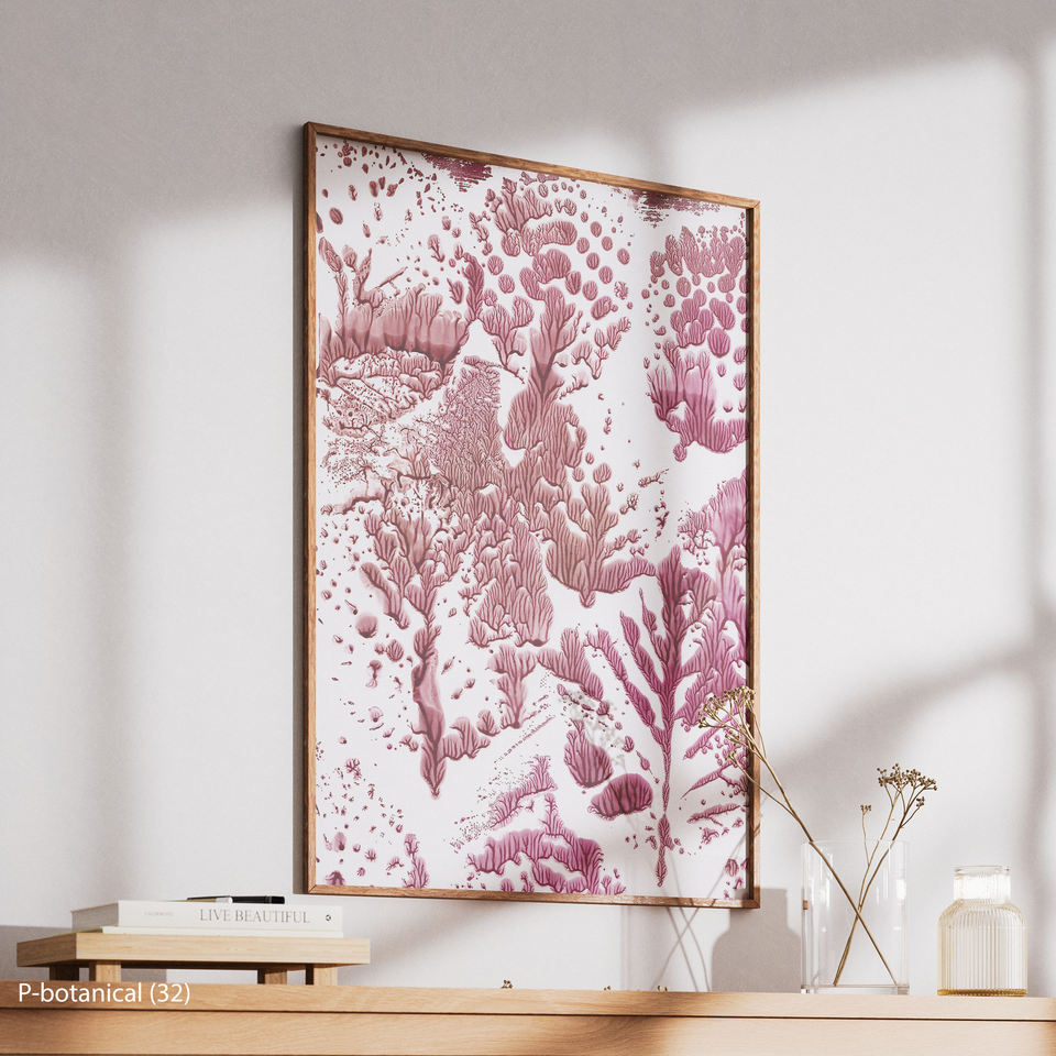 Red Coral Botanical Wall Art Canvas Print Modern Sea Plant Illustration Artistic Natural Decor Wood Frame