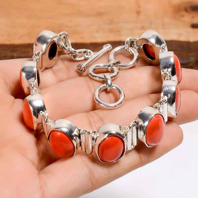 Keyword:Red Coral Glowing Bracelet Crafted With Red Coral Stones