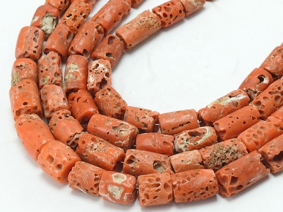 Italian Red Coral Tube Beads 8 Inch Strand 7-8mm Smooth Drum Beads 100% Natural Stone Third Party Certified