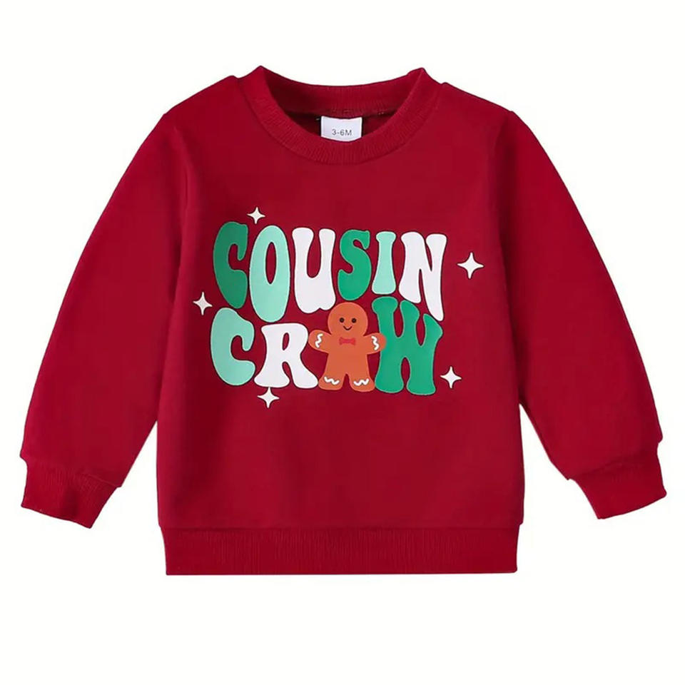Red Crew Neck Long Sleeve Pullover for Boys & Girls Cotton Blend Perfect for Fall Winter Winter Toddler Clothing