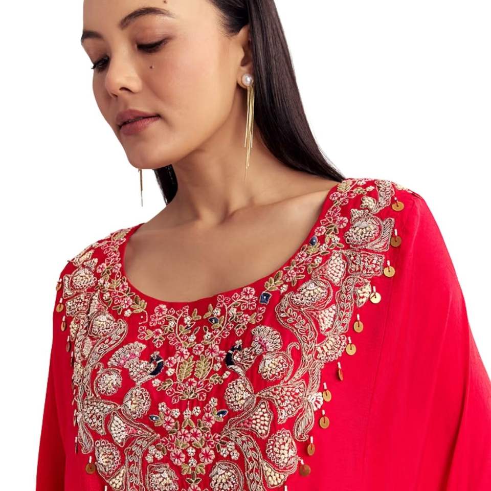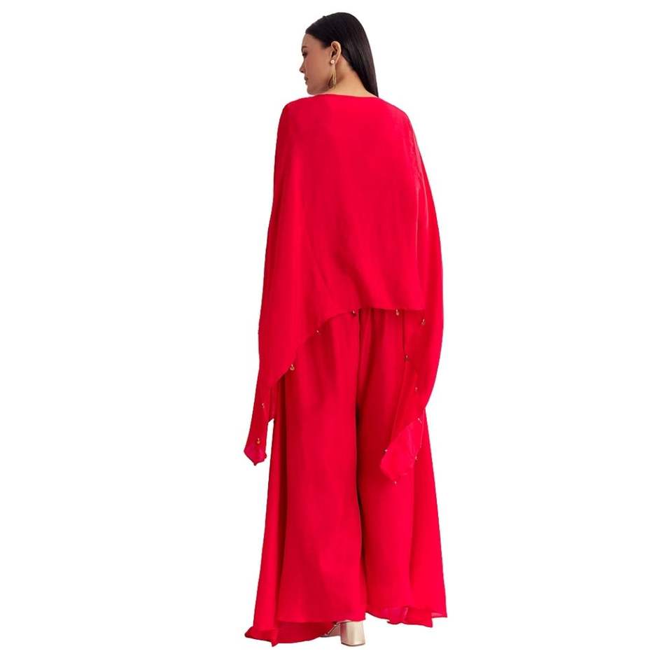 Red Dola Silk Cape Kurta Set With Embroidery Wholesale Women Ethnic Apparel OEM Clothing Factory Supplier Custom Party Wear